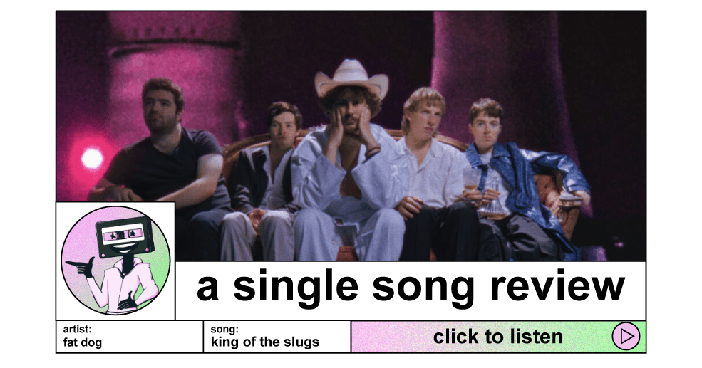 got such a bop for you this week. it’s balls to the wall nuts, and i’ve been looking forward to sharing it with you all for ages actually, partly because i really like the name, who doesn’t want to be king of the slugs? but also because it’s 7 minutes of pure madness and every second of it is dripping with energy and wild wild tone that makes it cut it’s way through the noise, before going on to make it’s own noise for shits and giggles. this weeks track is king of the slugs by bad dog and it rules.