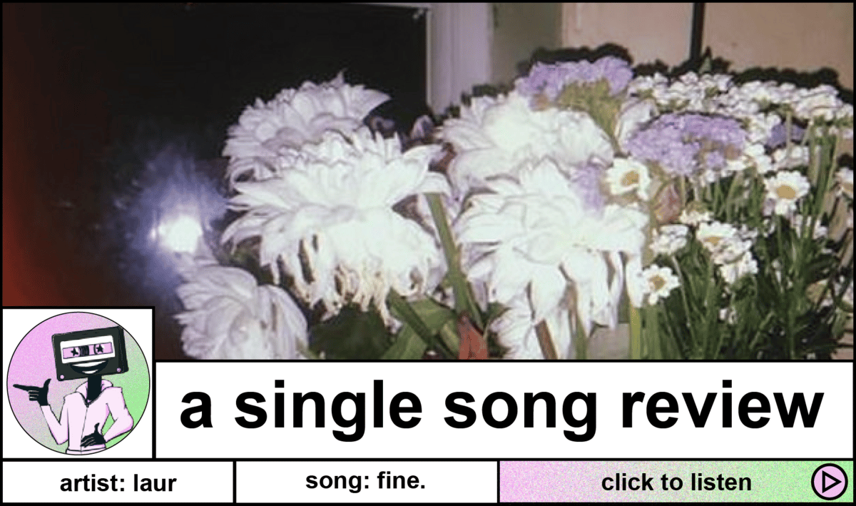 oohh doesn't this all look different! someone spent a few days redesigning everything, and that someone was me. the thinking being the old style was too much colour and stuff, so lost focus on the music, which is what we should be focusing on! so now, it's black and whites and space, but music and links to it is all lit up. it could all go back to how it was if people don't like it, which is why there's a poll below! like the look? don't like the look? let us know! anywho, we've got a song for you. meet laur, and their song fine. a super gentle and really heartfelt song with a lot of great gentle energy.