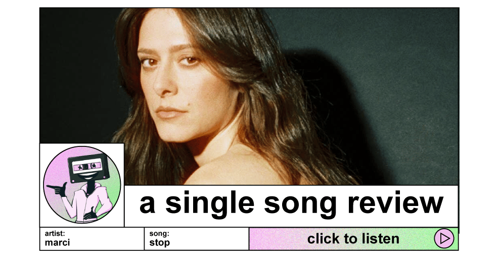 happy new year! let’s gooooo with a bit of a bop, why not? now i won’t lie, this song is a bit of an off kilter pop song., but it’s got a lot going for it that i really like and i think you will too. meet marci and her song stop, a mid tempo and chill pop song with a ton of creativity, even more cool energy and makes the case for smoking a cigarette while cutting the grass. i don’t know what i mean by that, but i stand by it.