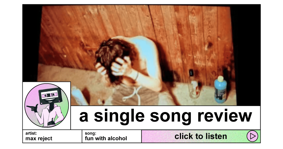 hellooooo everyone, i’m a lil bummed out today because i get real freaked out by fireworks, and last night was bonfire night here, so people set them off all over the show. i responded by shutting myself in a lil and playing some stellaris, which was ace, but apparently! the northern lights were about? or at least i keep seeing that on social media and i missed it entirely. who can say if that happened or not. to get over the potential of something that may or may not have happened, how’s about something aggresive and knarly? i think so, glad you agree. this week, we’re checking out some new hip hop from max reject and their song, fun with alcohol.