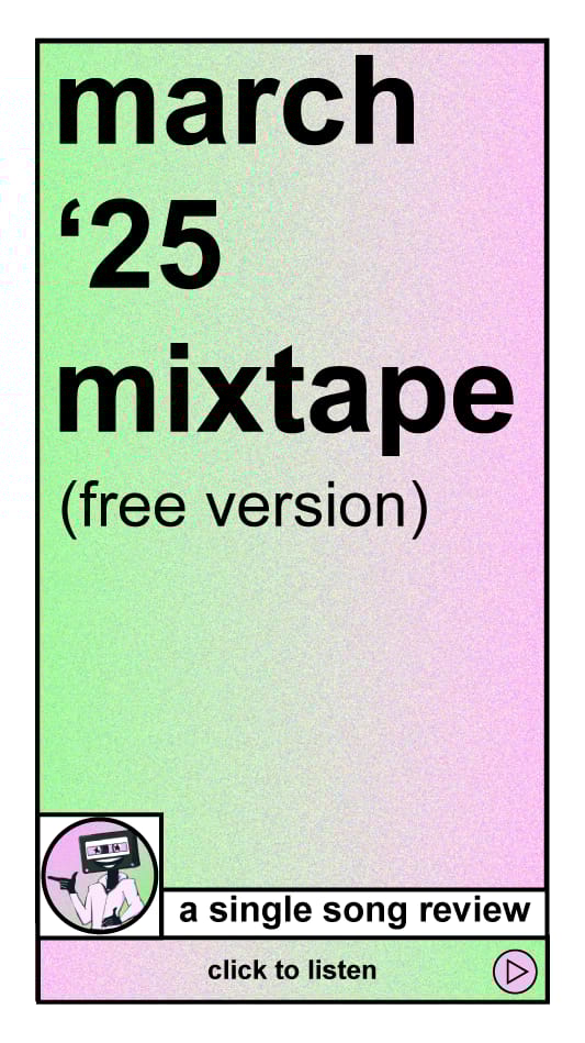 and as is now tradition, here’s the months song submissions! hear any you want reviewed? reply to this email and let me know!