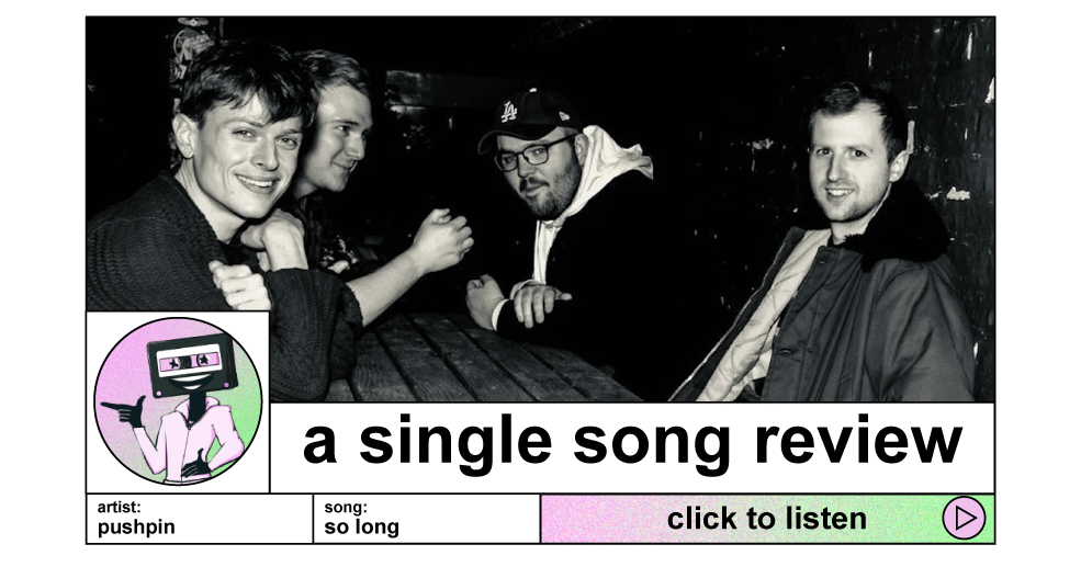 good morning and welcome to a lovely summery edition of a single song review! i’ve been getting really into these tiktoks lately where it’s just like really well treated video footage of cities and like sad indie music playing, and sometimes when i ride the bus to work i see the city and think man i’m really in an indie movie right now like, i’m the main character. it’s a modest trait i must say. anyway, this weeks song is the ideal soundtrack for precisely that kind of tiktok so if you see it being used for that well, you’re welcome. meet london indie boys pushpin and their song so long.