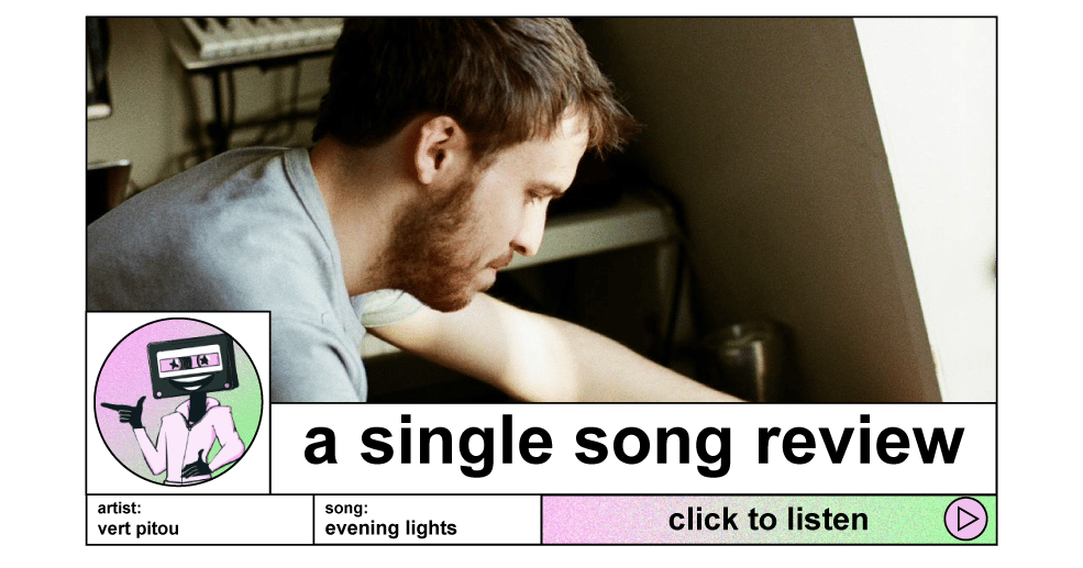 okay, i have now, finally, brought an end to premium jazz corner, never to return. or soon to return, depending on if / when i get another jazzy banger. in the meantime, i’m thinking let’s take a look at some of the genres less well travelled on this here newsletter. with my eyes set very firmly on folk, and the folky good work of one vert pitou. it’s not all plucked strings and roasted marshmallows however, this songs got a lot going on and lots of it is very cool. it’s called evening lights, i’m really enjoying it on this blustery eve and i reckon you will too!